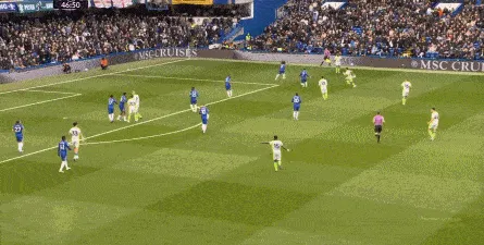 这种情况下,帕尔默和若昂-佩德罗又不能直接从中路打出进攻,也就不能吸引防守重心,从而给边路制造出更大的空间,所以在上半场后半段,切尔西的威胁进攻就变得很少了,这次帕尔默在中路实际失误,但错进错出形成的传中,就是为数不多的机会了: